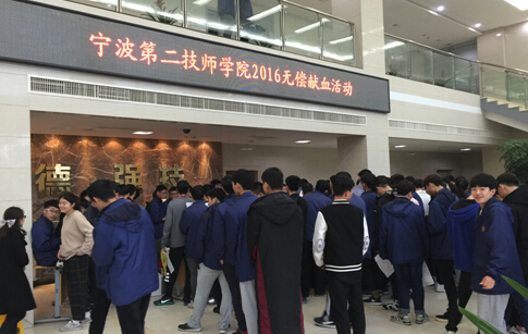 又到一年冬季,用血紧张的时间,2016年12月21日下午,宁波第二技师学院近二百名学生在校综合楼一楼大厅内进行了无偿献血。学校相关负责同志、老师及团委学生会的志愿者纷纷前往综合楼大厅对参加献血的同学表达了关心和慰问。